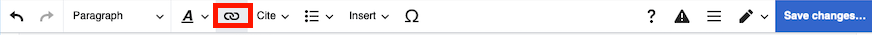 Go to the toolbar and click on the link icon (screenshot example below). You will have a choice to add a Gynopedia link or an external link.