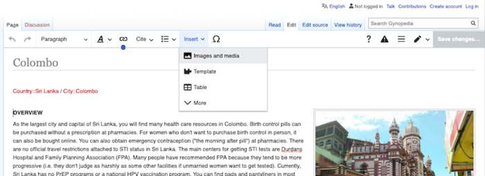 If you're new to editing Gynopedia or other wikis, it is strongly encouraged that you use VisualEditor. It's much easier to use. Here's how you use it: Click the "Edit" button. You will then be given a visual view of the page to edit. When you're in VisualEditor, the user experience is very easy. You edit the page like how you would edit a Google Doc or Microsoft Word document. No coding or special skills are necessary! For more information, check out this VisualEditor User Guide.