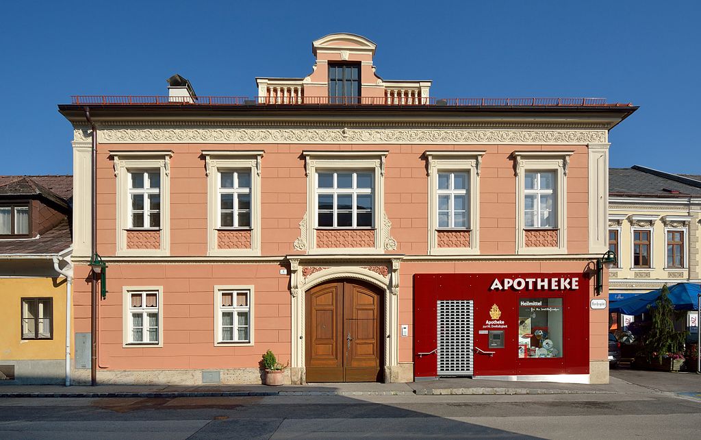 Free image from Wikimedia Commons: https://commons.wikimedia.org/wiki/File:Apotheke_Aspang-Markt_DSC_1070w.jpg Description English: Pharmacy at Aspang-Markt, Kirchenplatz 2, Lower Austria Deutsch: Apotheke zur Heiligen Dreifaltigkeit in Aspang-Markt, Kirchenplatz 2, Niederösterreich Français : Pharmacie à Aspang-Markt, 2, Kirchenplatz, Basse-Autriche Date 7 June 2014 Source Own work Author P e z i