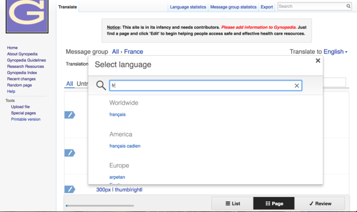 Are you interested in translating Gynopedia pages into another language? We deeply appreciate any translation help, so we've compiled a guide that explains how translation works (see below). If translation interests you, please reach out to us directly (email us: gynopediawiki@gmail.com), and we can talk about how you can get started.